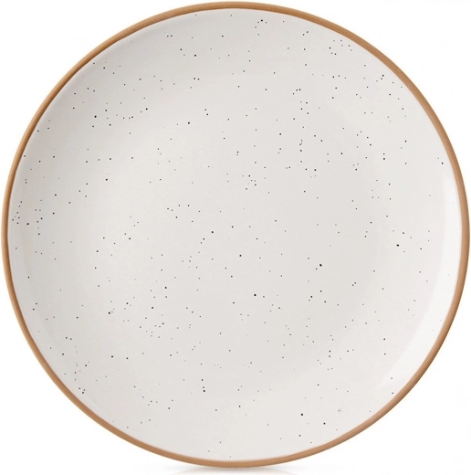 Štýlový plytký tanier z kvalitnej keramiky vyniká moderným prírodným vzhľadom: škvrnitá glazúra a kontrastný kamenný lem dodávajú stolovaniu nadčasový šmrnc. Široký a plytký tvar poskytuje dostatok priestoru na servírovanie hlavných chodov, šalátov aj dezertov.