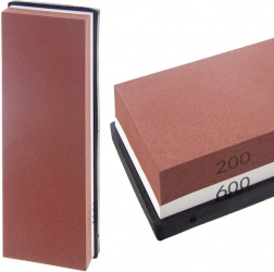 Obojstranný kameň kombinuje zrnitosti 200 na rýchle brúsenie a 600 na finálne doostrenie a leštenie v jednom nástroji.