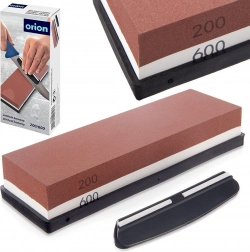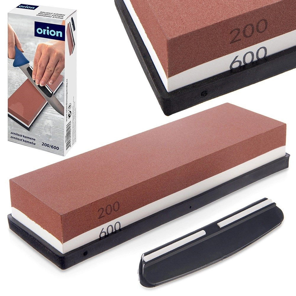Univerzálny dvojvrstvový brúsny kameň z odolného korundu si poradí s brúsením kuchárskych nožov, nožníc, dlát aj záhradného náradia. Hrubosť 200 rýchlo obnoví ostrie, jemnosť 600 ho vyhladí a doleští. Súčasťou je vodiaca spona (15–20°) pre konzistentný uhol a bezpečné vedenie čepele.