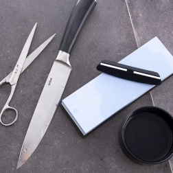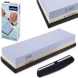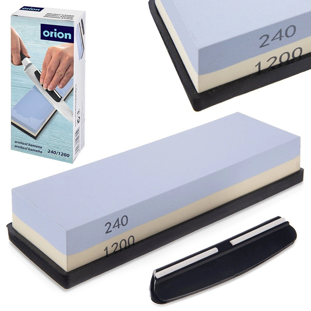 Obnovte ostrie svojich kuchynských nožov jednoducho a bezpečne. Obojstranný vodný brúsny kameň z odolného korundu kombinuje hrubú stranu #240 na rýchle zarovnanie ostria a jemnú stranu #1200 na finálne dobrúsenie a leštenie. Protišmyková silikónová podložka drží kameň stabilne na mieste, zatiaľ čo priložená vodiaca lišta zabezpečuje konzistentný uhol a profesionálny výsledok.