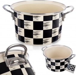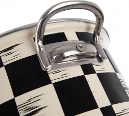 Elegantný dizajn Šachovnica v čierno‑béžovej kocke skvele zapadne do moderných aj retro kuchýň. Pevné, ergonomické úchyty poskytujú istý úchop pri prenášaní. Hrniec je kompatibilný s plynovými, elektrickými, sklokeramickými, halogénovými aj indukčnými varnými doskami, možno ho použiť aj v rúre a pohodlne umývať v umývačke riadu.