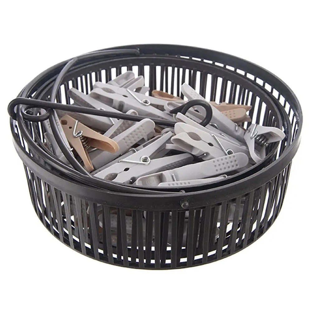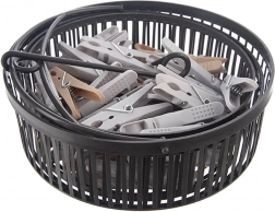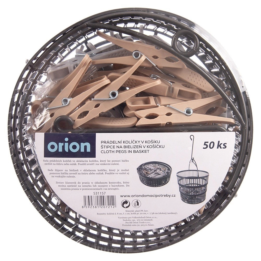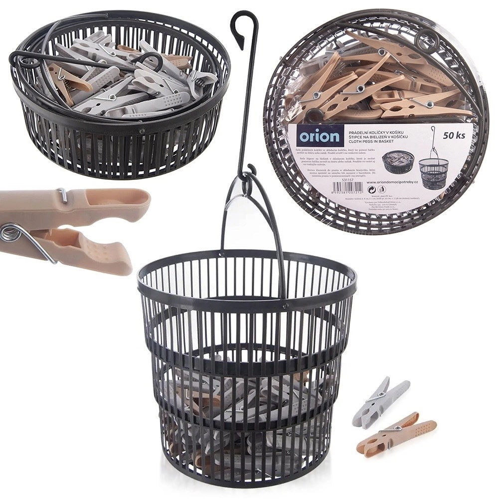Sada obsahuje 50 odolných kolíčkov v praktickom košíku, ktorý možno zavesiť na sušiak alebo šnúru. Otvorená, vetraná konštrukcia košíka zabezpečuje odtok vody a rýchle osychanie, kolíčky tak máte vždy poruke. Kolíčky v sivej a béžovej farbe sú vyrobené z kvalitného plastu s kovovou pružinou pre dlhú životnosť.