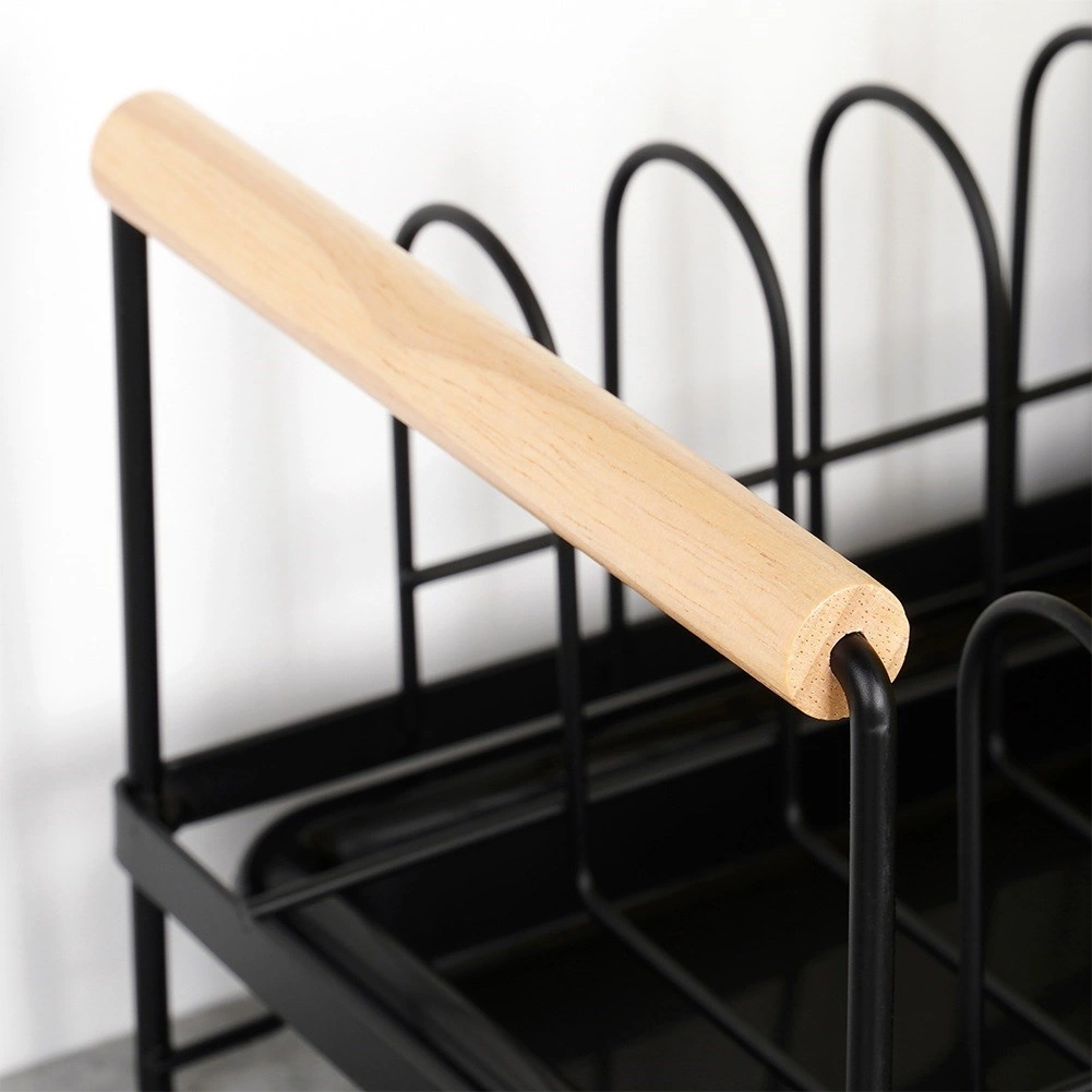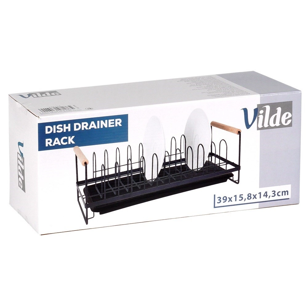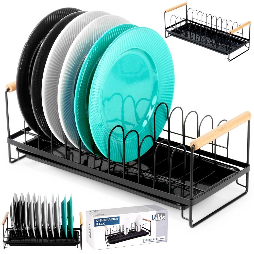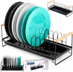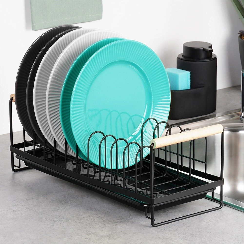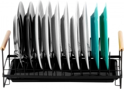 Kompaktný odkvapkávač na riad s kapacitou až na 10 tanierov udrží kuchynský priestor suchý a organizovaný. Odolná kovová konštrukcia v matnej čiernej, vyberateľná odkvapkávacia miska a pohodlné bambusové madlá pre jednoduché prenášanie. Štýlový industriálny dizajn sa hodí do moderných aj klasických kuchýň.