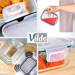 Veká so štyrmi klipmi a silikónovým tesnením spoľahlivo tesnia, udržia čerstvosť potravín a zabránia úniku tekutín pri prenášaní.