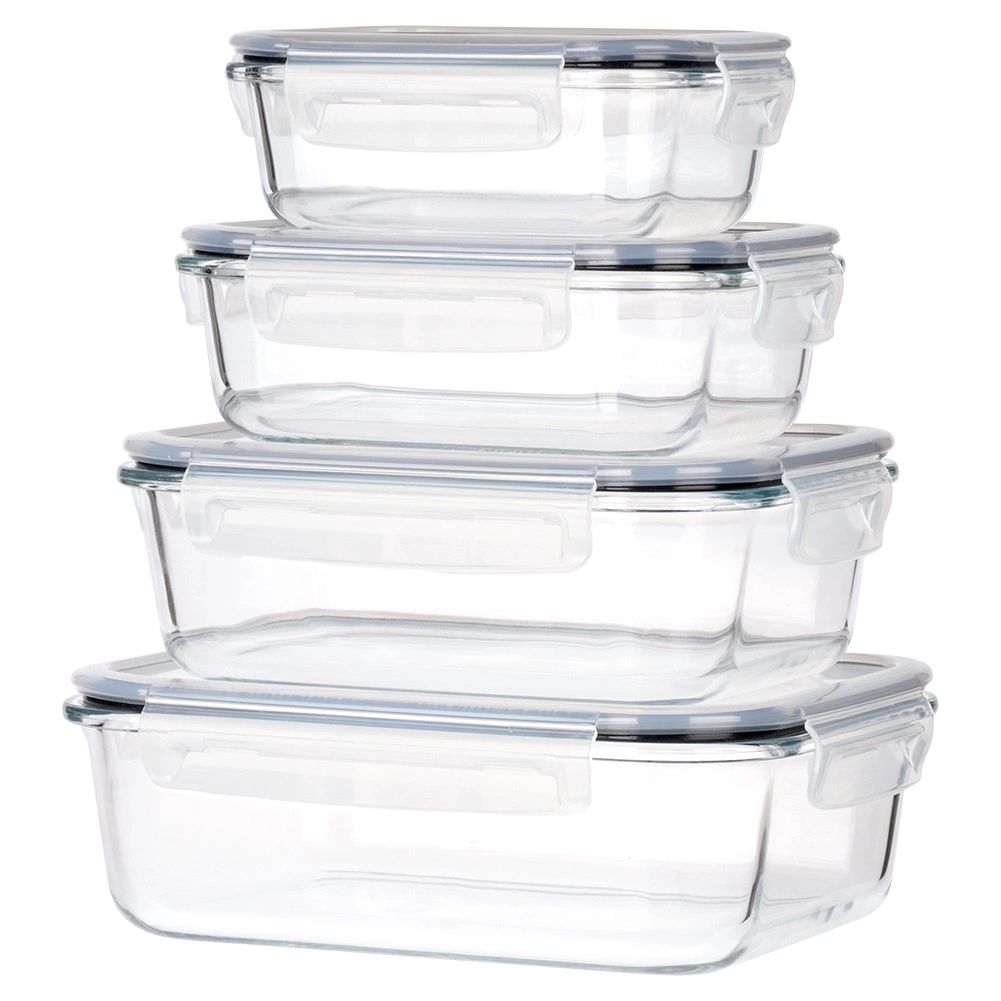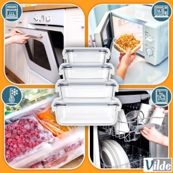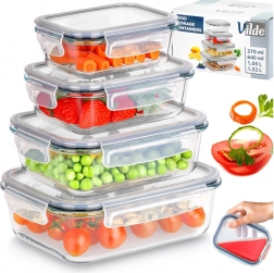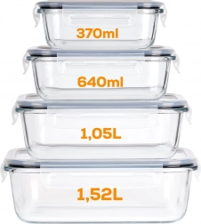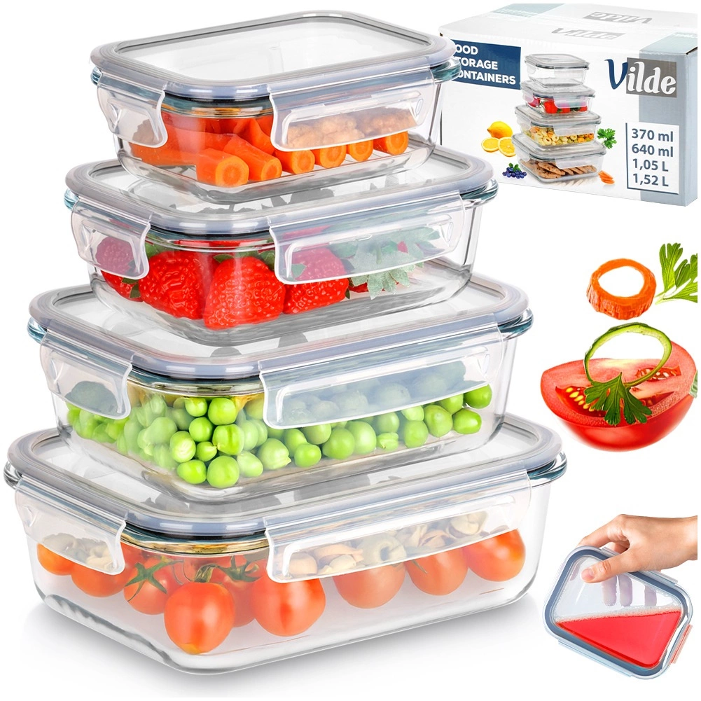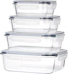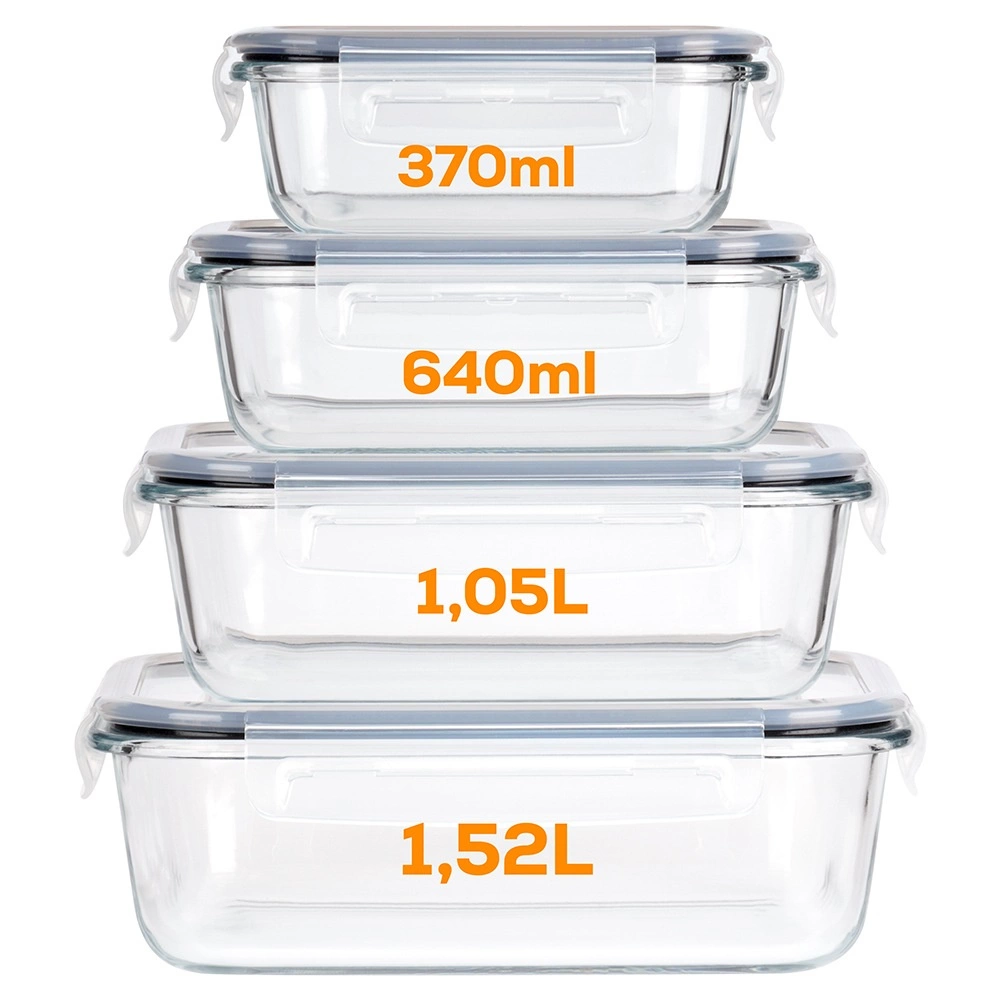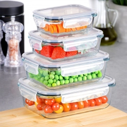 Sada štyroch sklenených dóz z borosilikátového skla s tesniacimi vekami a štyrmi klipmi pre bezpečné uzavretie udrží vaše jedlo dlhšie čerstvé. Vďaka rôznym veľkostiam a možnosti vnoriteľného skladovania šetria miesto a sú ideálne do chladničky, mrazničky, mikrovlnky aj rúry. Vzduchotesné uzavretie, odolné borosilikátové sklo, použitie v rúre aj mikrovlnke (bez veka) a jednoduchá údržba v umývačke.