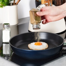 Perforované kovové viečka umožňujú rovnomerné sypanie a kontrolu množstva – ideálne na soľ, korenie aj jemne mleté dochucovadlá.
