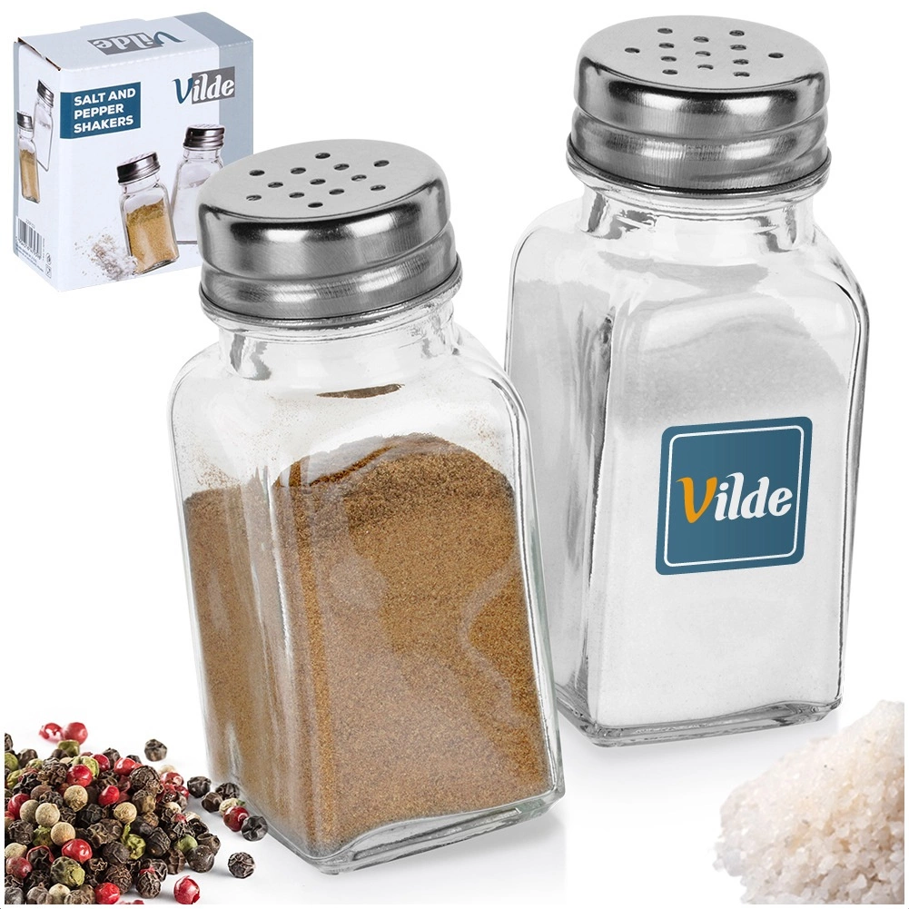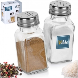 Praktická sada dvoch koreničiek – soľnička a korenička z číreho hrubostenného skla s kovovým viečkom s dávkovacími otvormi. Každá nádoba má objem 80 ml a rozmery 4 × 4 × 9,5 cm. Ideálne na každodenné používanie doma aj v gastronómii, s klasickým dizajnom, ktorý ladí s každým prestieraním.