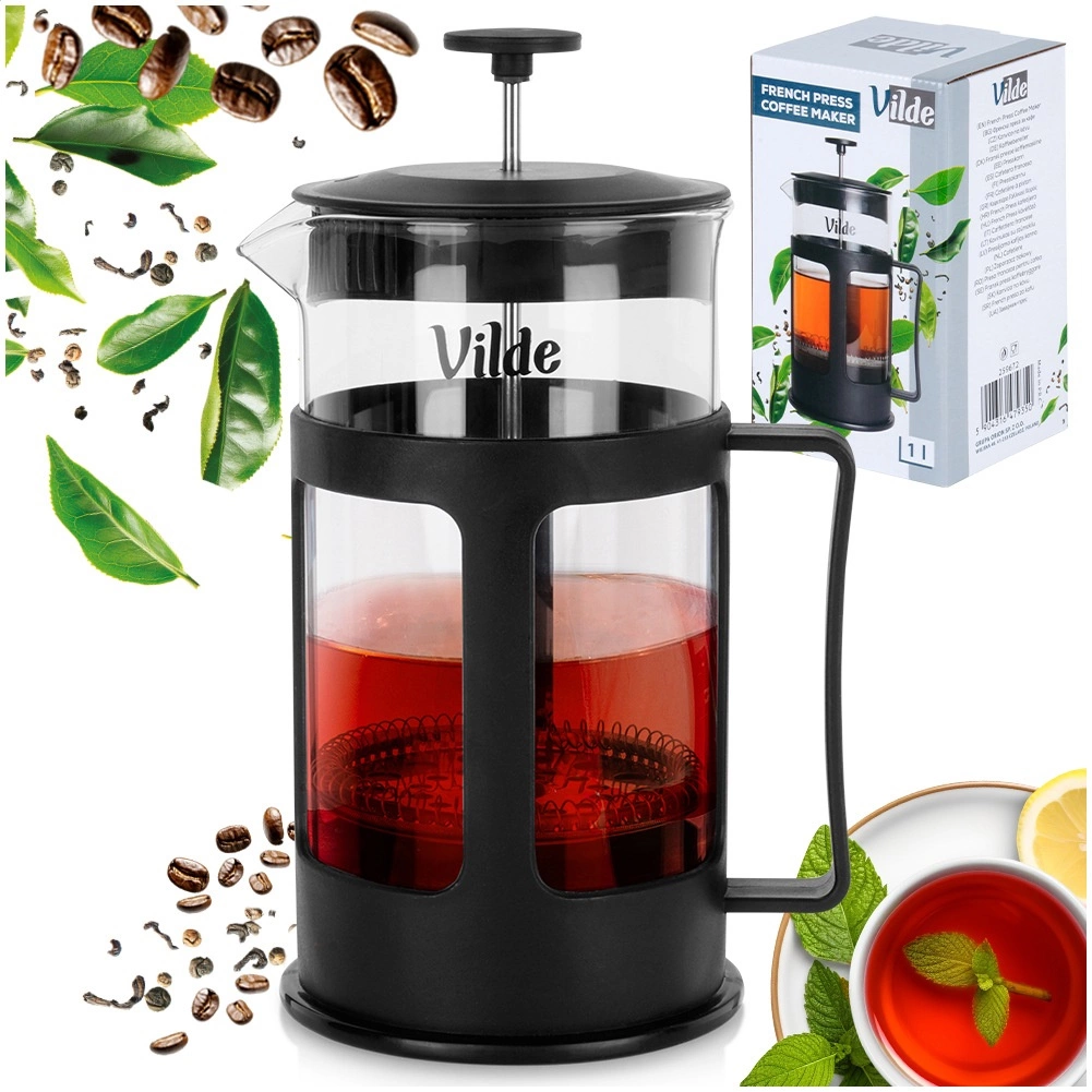 Elegantný french press VILDE spája jednoduchosť ručnej prípravy s čistou chuťou. Sklenená kanvica z borosilikátového skla je odolná voči teplotným šokom, zatiaľ čo piest z nehrdzavejúcej ocele s jemným sitkom oddelí aj drobné častice pre krištáľovo čistý nápoj. Ergonomické ucho a presný zobáčik uľahčujú servírovanie doma aj v gastronómii.