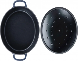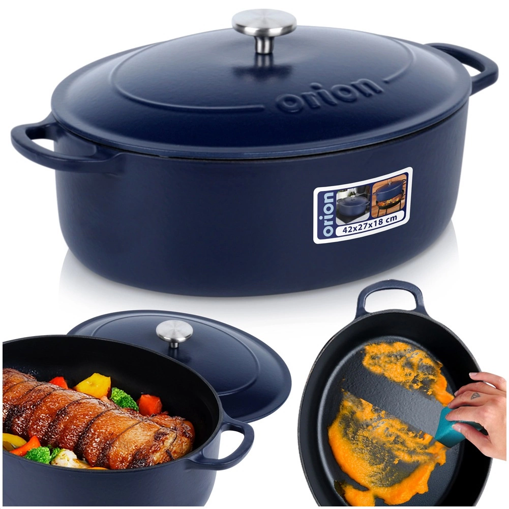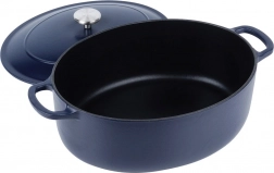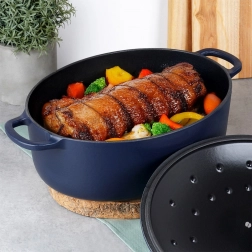 Objavte univerzálny oválny pekáč z kvalitnej smaltovanej liatiny, v ktorom pripravíte krehké pečienky, šťavnaté ragú aj nadýchané zapekané pokrmy. Ťažká liatina sa zohrieva rovnomerne a dlho udržiava teplotu, takže jedlo zostane teplé aj pri servírovaní na stôl. Vnútorný čierny smalt uľahčuje vyprážanie a uvoľnenie štiav, vonkajší tmavomodrý smalt dodá eleganciu každej kuchyni.