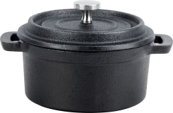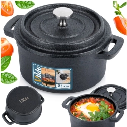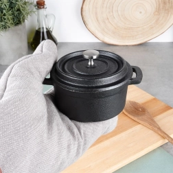 Tento miniatúrny liatinový hrniec v podobe kokotky zaujme odolnou konštrukciou a všestrannosťou. Je vhodný na sporák, priamo na oheň aj do rúry, takže ľahko pripravíte a naservírujete polievky, omáčky, zapekané jedlá, zeleninu či dezerty.