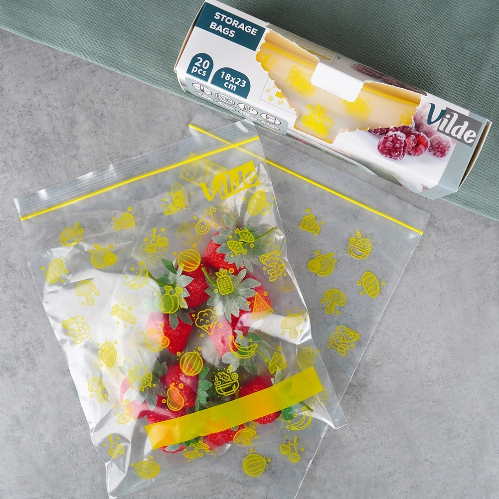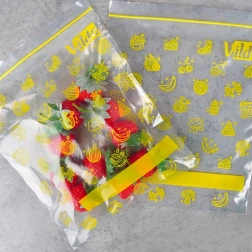 Vrecká so zipsom s rozmerom 18 × 23 cm sú ideálne na hygienické skladovanie potravín doma aj na cestách. Priehľadný materiál s potlačou umožňuje rýchlu vizuálnu kontrolu obsahu, zatiaľ čo spoľahlivé zipsové uzatváranie udrží potraviny dlhšie čerstvé.