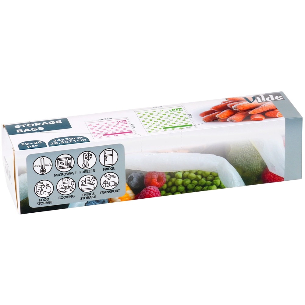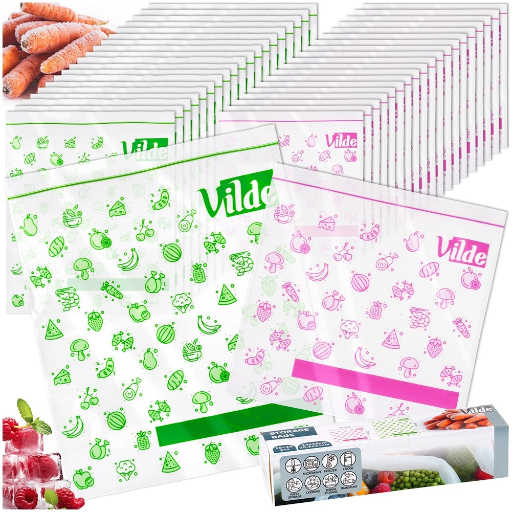 Praktická sada 40 ks vreciek so zipsovým uzáverom v dvoch veľkostiach na prehľadné a hygienické skladovanie potravín. Skladovanie, mrazenie aj ohrev v jednom, tesné uzavretie proti vlhkosti a strate čerstvosti, priehľadný materiál s miestom na popis a univerzálne využitie doma aj na cesty.