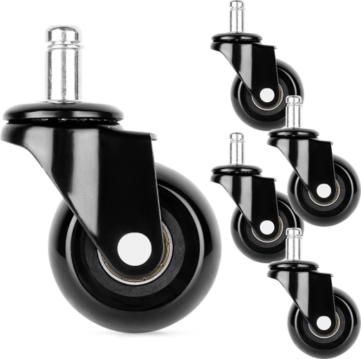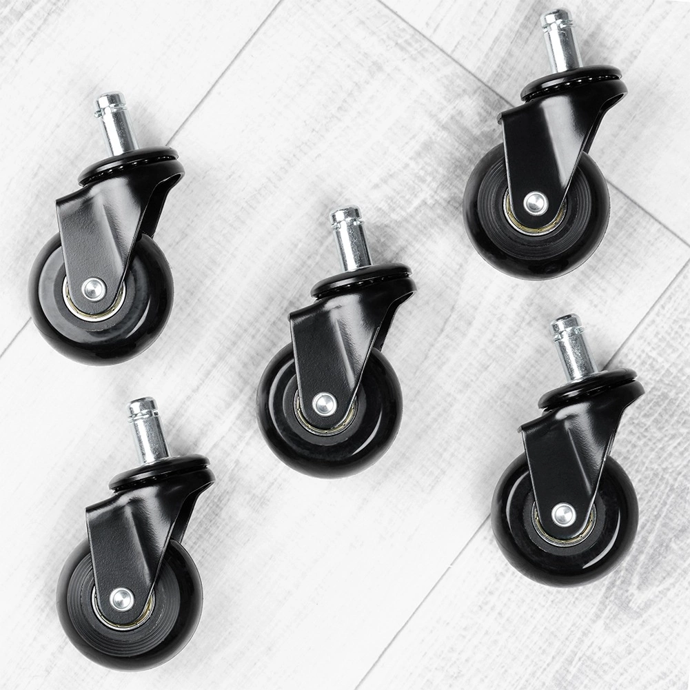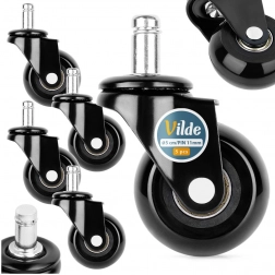 Inštalácia je otázkou okamihu — stačí vysunúť staré kolieska a zasunúť nové do päťramennej základne. Štandardný čap 11 mm zaručí širokú kompatibilitu s väčšinou kancelárskych stoličiek (nevhodné pre stoličky IKEA). Ideálne pre drevo, laminát, dlažbu aj vinyl.