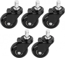 Náhradná sada piatich koliesok pre kancelárske stoličky s ľahkou montážou bez náradia. Gumené kolieska zabezpečujú tichý a plynulý pojezd, chránia podlahu pred poškriabaním a majú univerzálny čap 11 mm. Vhodné pre väčšinu stoličiek, ideálne na tvrdé podlahy.