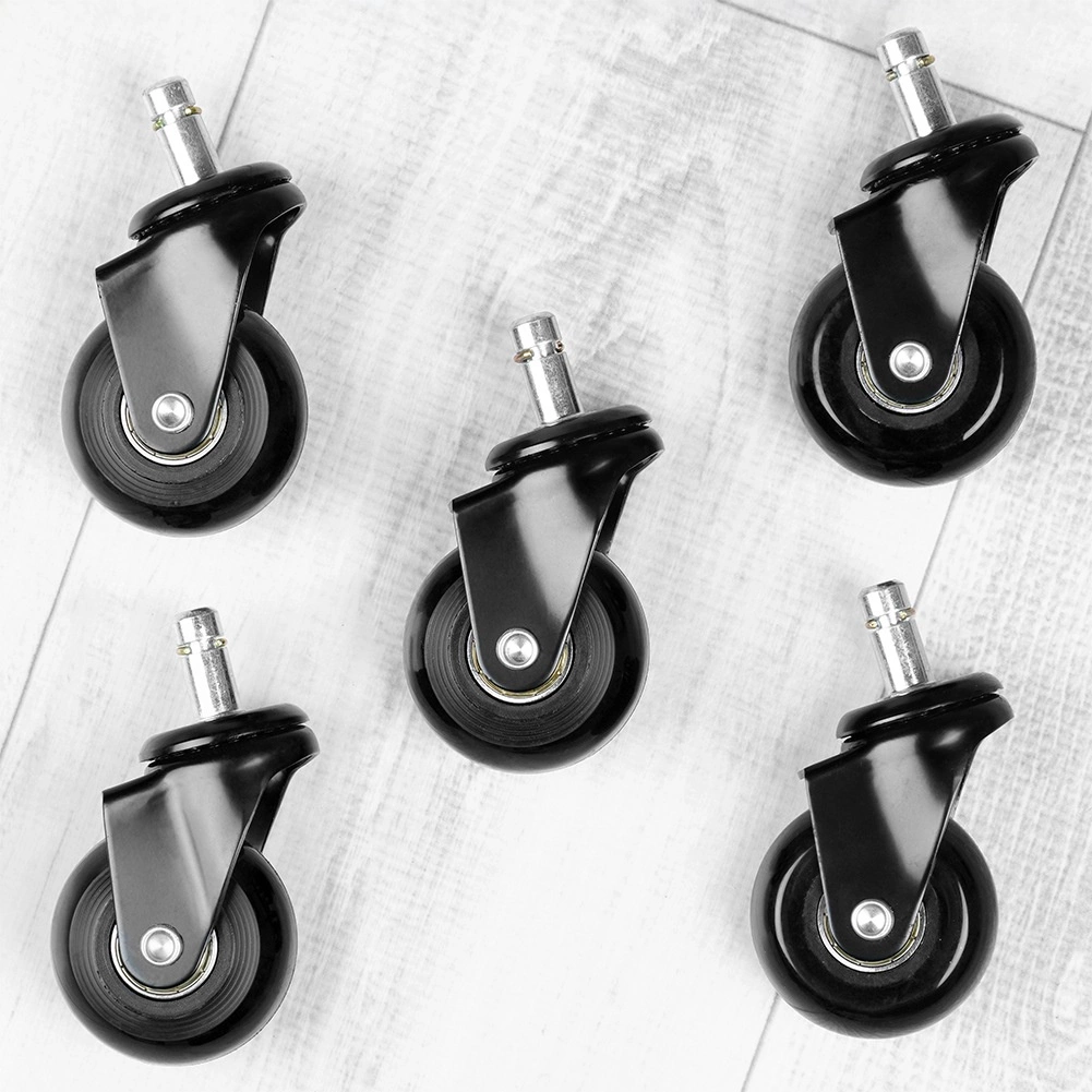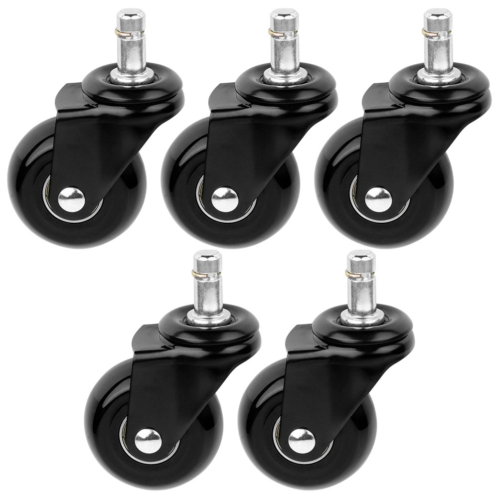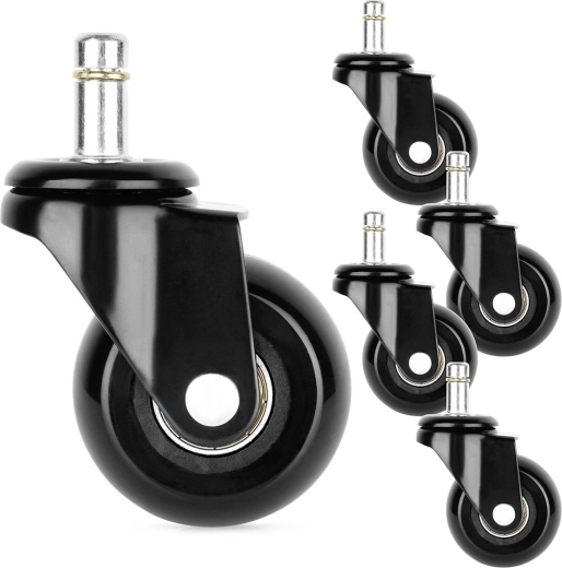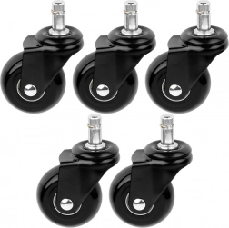 Praktická sada piatich náhradných koliesok pre kancelársku stoličku prináša tichý a plynulý pohyb po tvrdých podlahách. Gumový povrch minimalizuje hluk aj vibrácie a zároveň chráni podlahy pred škrabancami. Vďaka priemeru kolieska 50 mm a kovovému čapu 10 mm sa ľahko hodí k širokej škále stoličiek.