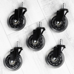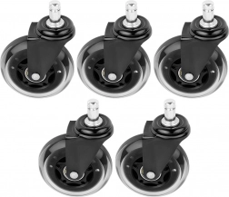 Praktická sada piatich náhradných koliesok pre kancelárske stoličky zaistí tichý a plynulý pojazd na tvrdých podlahách bez nepríjemného vŕzgania. Gumový povrch je šetrný k podlahe a zároveň odolný voči opotrebovaniu, takže kolieska vydržia každodenné používanie v kancelárii aj doma.