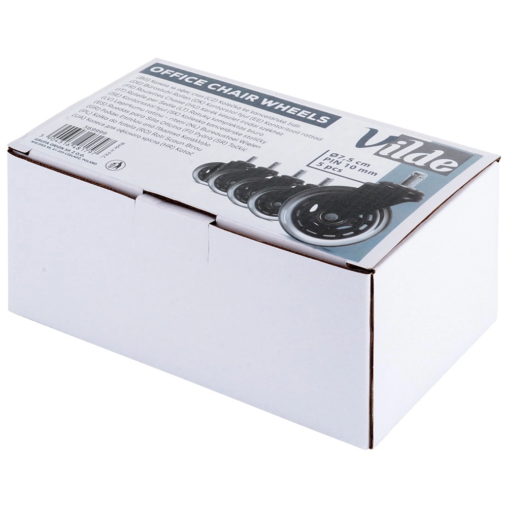 Sada piatich náhradných koliesok pre kancelárske stoličky prináša pohodlný a kultivovaný pohyb po tvrdých podlahách. Kolieska z odolného kaučuku tlmia hluk, šetria povrchy a vďaka kvalitným ložiskám zabezpečujú plynulé otáčanie aj pri dlhšom používaní.