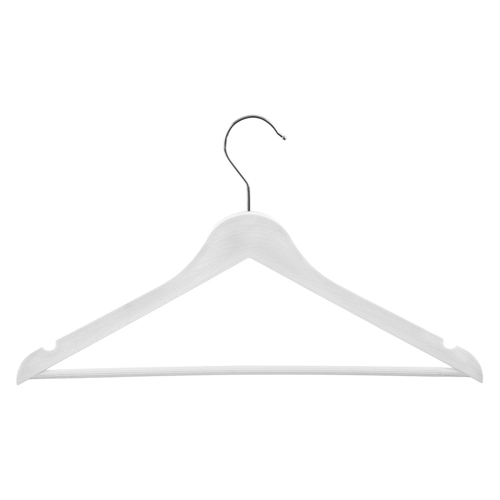 Sada troch univerzálnych ramienok v bielej farbe pomôže udržať poriadok a prehľad vo vašej skrini aj v predajniach s odevmi. Povrch s imitáciou dreva pôsobí štýlovo, pritom je odolný a ľahko sa udržiava. Kovový otočný háčik uľahčí zavesenie v akomkoľvek smere.