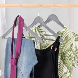 Praktické zárezy udržia ramienka od šiat a topov, zatiaľ čo horizontálna tyč je ideálna na nohavice, sukne či šatky.