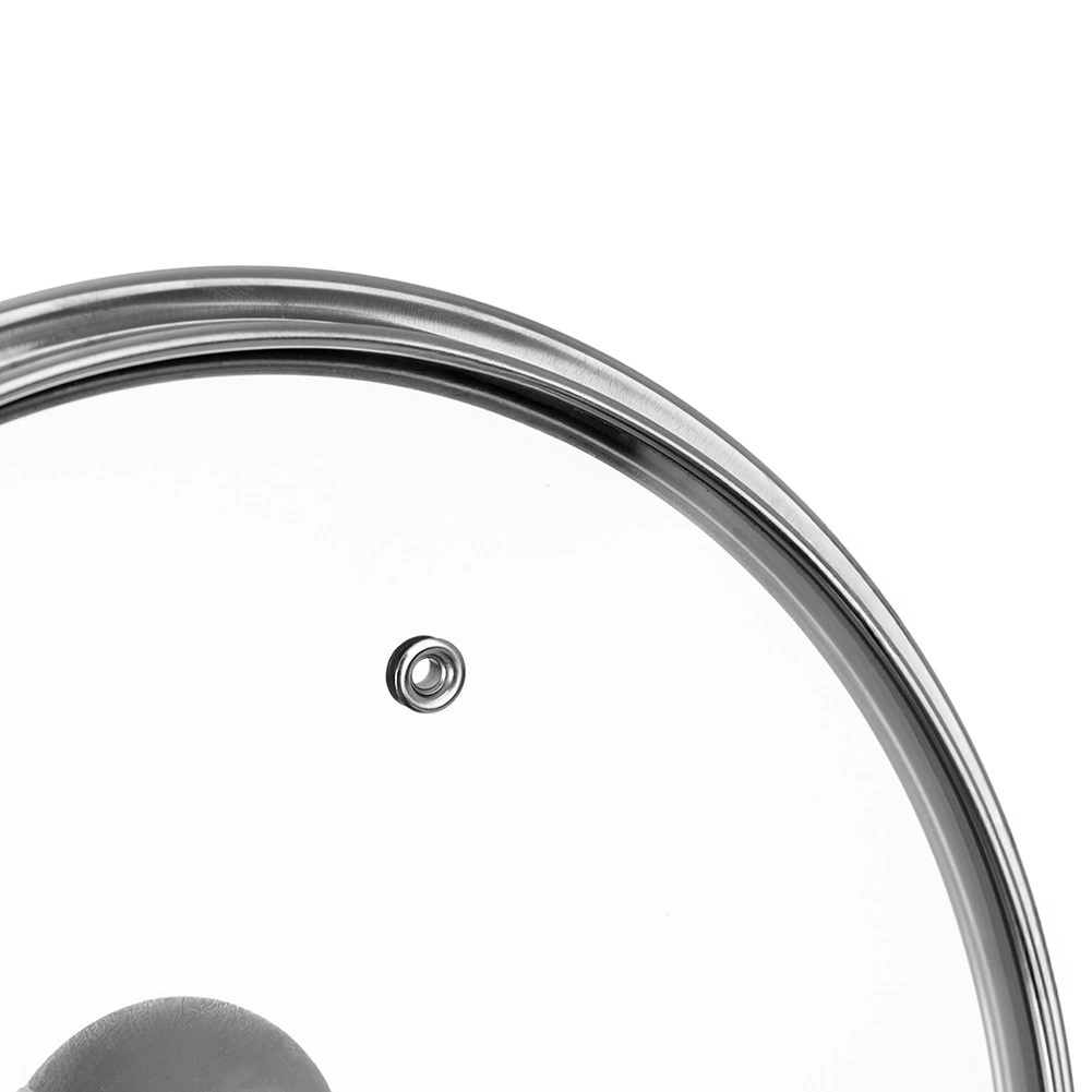 Praktická pokrievka z číreho žiaruvzdorného skla umožní kontrolovať varenie bez jej nadvihovania. Odolný nerezový lem a vysoký rant zabezpečujú tesné priľnutie k okraju nádoby, zatiaľ čo ergonomický úchyt z odolného plastu uľahčuje manipuláciu. Vďaka odvetrávaniu pary je varenie bezpečnejšie a rovnomernejšie.