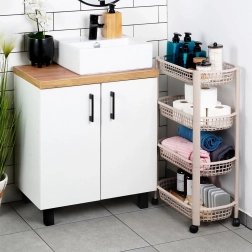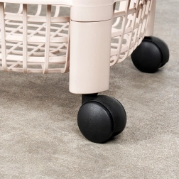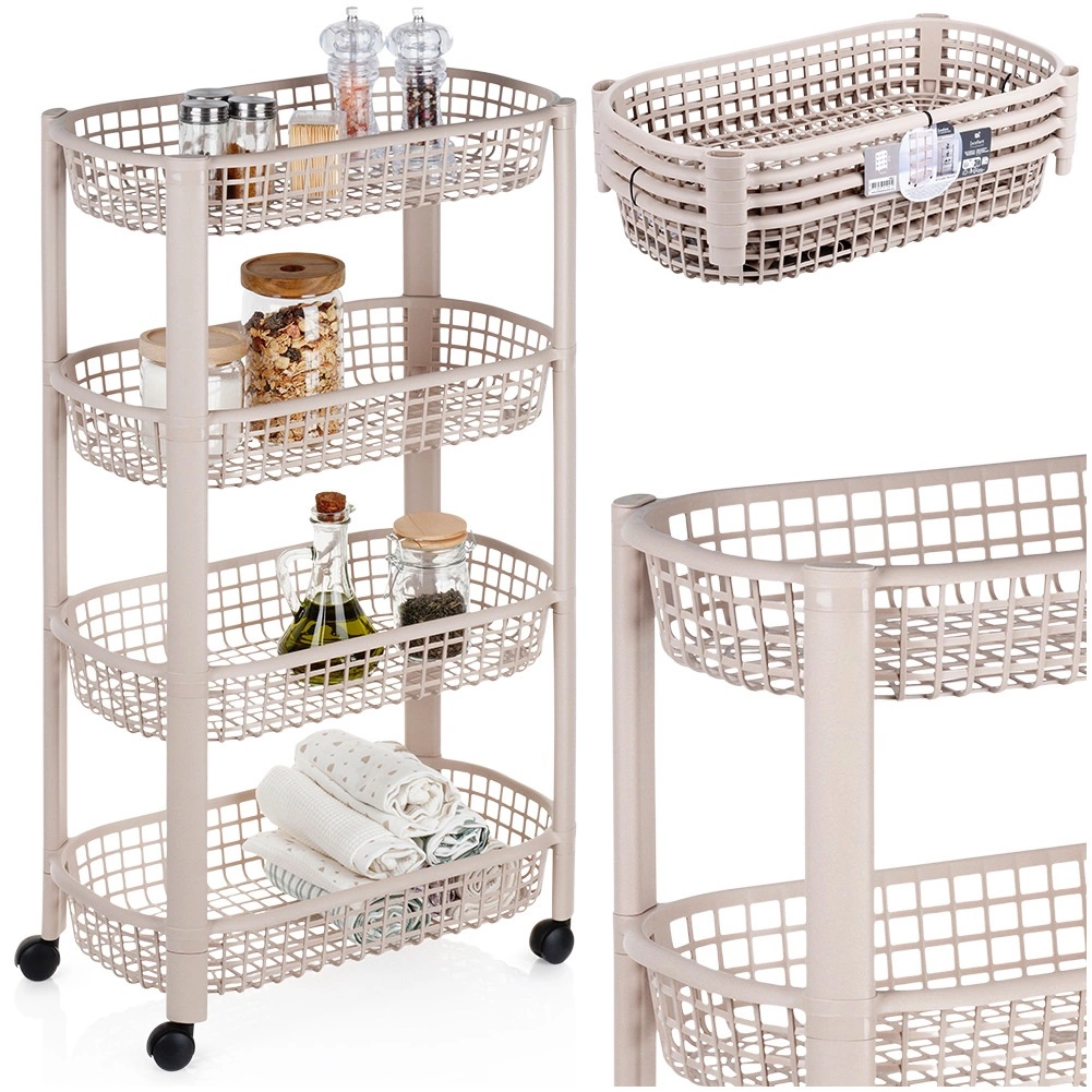 Robustné, no ľahké prevedenie z odolného plastu sľubuje jednoduchú montáž a stabilitu. Vďaka štyrom otočným kolieskam (dva kusy s brzdou) regál ľahko presuniete tam, kde ho práve potrebujete, a bezpečne zafixujete na mieste. Minimalistický béžový dizajn sa prirodzene začlení do každého interiéru.