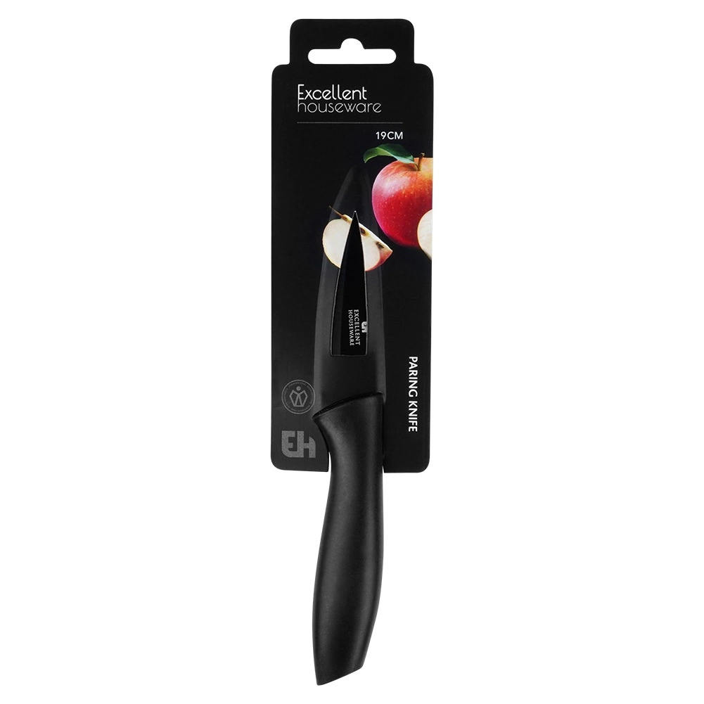 Kompaktný škrabací nôž s dĺžkou 19 cm na precíznu prácu v kuchyni. Ponúka ostrú nehrdzavejúcu čepeľ, ergonomickú rukoväť a univerzálne použitie na ovocie, zeleninu aj drobné krájanie. Vďaka čiernej matnej povrchovej úprave skvele vyzerá a možno ho umývať v umývačke.