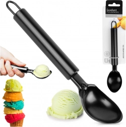 Táto robustná naberačka na zmrzlinu je vyrobená z kvalitnej nehrdzavejúcej ocele s práškovým lakovaním v matnej čiernej. Hlboká, zaoblená hlava (šírka cca 4,3 cm) tvaruje ukážkovo guľaté porcie bez námahy, a to aj pri tvrdšie zmrazených dezertoch.