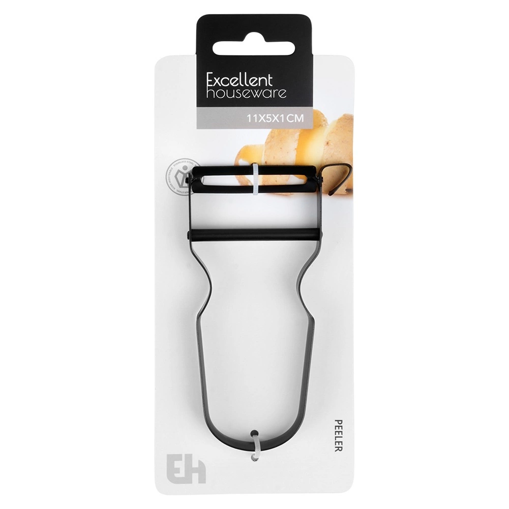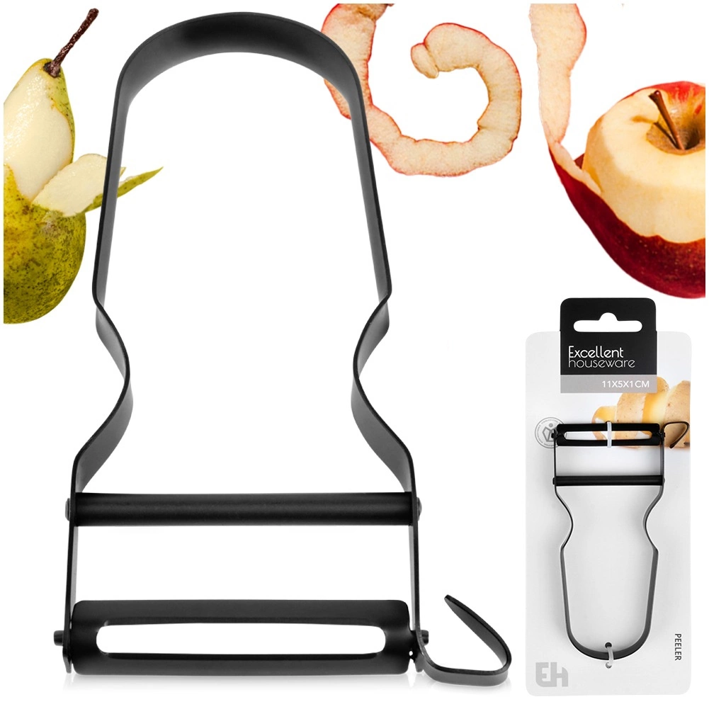 Praktická Y-škrabka s rozmermi 11,5 × 5,3 × 1 cm a dĺžkou čepele 5 cm si poradí so šupkami zemiakov, mrkvy, jabĺk či uhoriek. Telo z nehrdzavejúcej ocele s odolnou práškovou povrchovou úpravou v matnej čiernej farbe zaisťuje dlhú životnosť a moderný vzhľad.