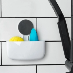 Otvorený tvar s oblým horným okrajom zaisťuje ľahký prístup k špongii, kefke alebo kozmetike priamo v sprche.