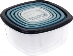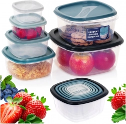 Dózy sú vyrobené z odolného plastu, bezpečného pre kontakt s potravinami. Viečka dobre priliehajú a pomáhajú udržať čerstvosť a arómu. Využijete ich doma, do práce aj na cesty. Outletové upozornenie: pri jednej nádobe s objemom 1,9 l je viečko výrobnou chybou horšie pasujúce.