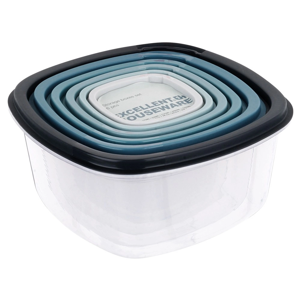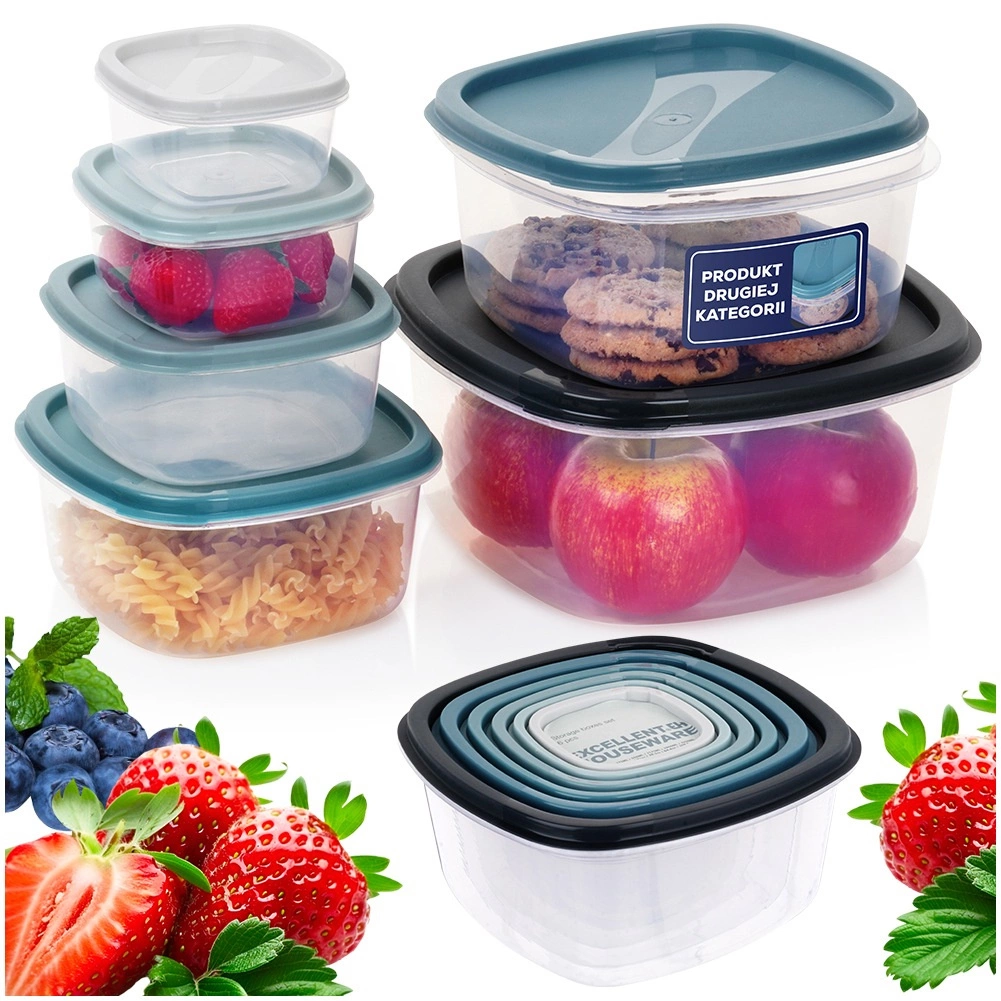 Praktická sada 6 transparentných dóz na potraviny s farebnými viečkami v odtieňoch modrej prináša poriadok do každej kuchyne. Vďaka rôznym objemom sa hodí na sypké suroviny, ovocie, desiaty aj hotové jedlá. Dózy sú stohovateľné a vkladacie pre úsporu miesta, majú tesniace viečka pre dlhšiu čerstvosť a sú vhodné do chladničky, mrazničky, mikrovlnky aj umývačky. Upozornenie: outlet – pri jednej dóze 1,9 l je nepresne pasujúce viečko.