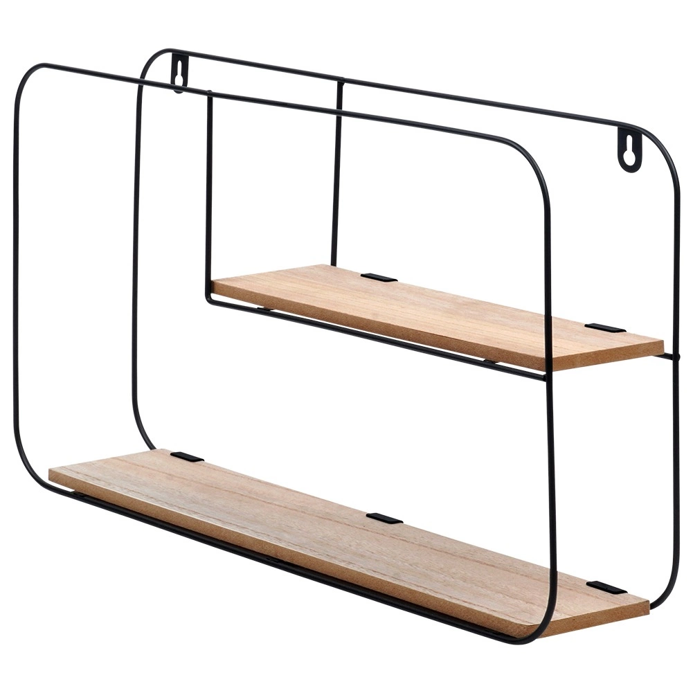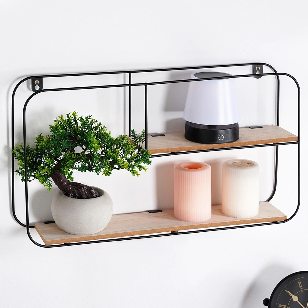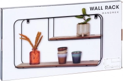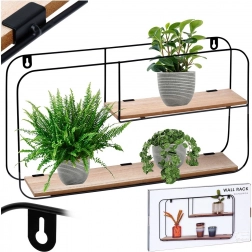 Táto nástenná polica zaujme minimalistickým, industriálnym vzhľadom a kompaktnými rozmermi, ktoré sa hodia do menších aj väčších interiérov. Dve poschodia poskytujú praktický priestor na vystavenie dekorácií, suvenírov, sviečok či menších kvetináčov. Čierny kovový rám a prírodný tón políc z MDF vytvárajú moderný kontrast, ktorý zapadne do industriálneho, moderného aj škandinávskeho štýlu.