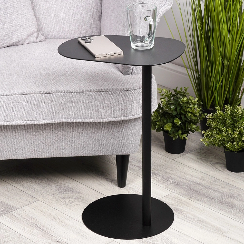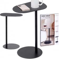 Minimalistický bočný stolík je ideálny ako odkladacie miesto na kávu, telefón, ovládače či notebook. Celokovová konštrukcia s matnou čiernou povrchovou úpravou pôsobí elegantne a ľahko sa kombinuje s moderným aj klasickým štýlom. Vďaka štíhlej nohe a kruhovej základni s priemerom 27 cm ostáva stabilný, bez toho, aby zaberal veľa miesta.