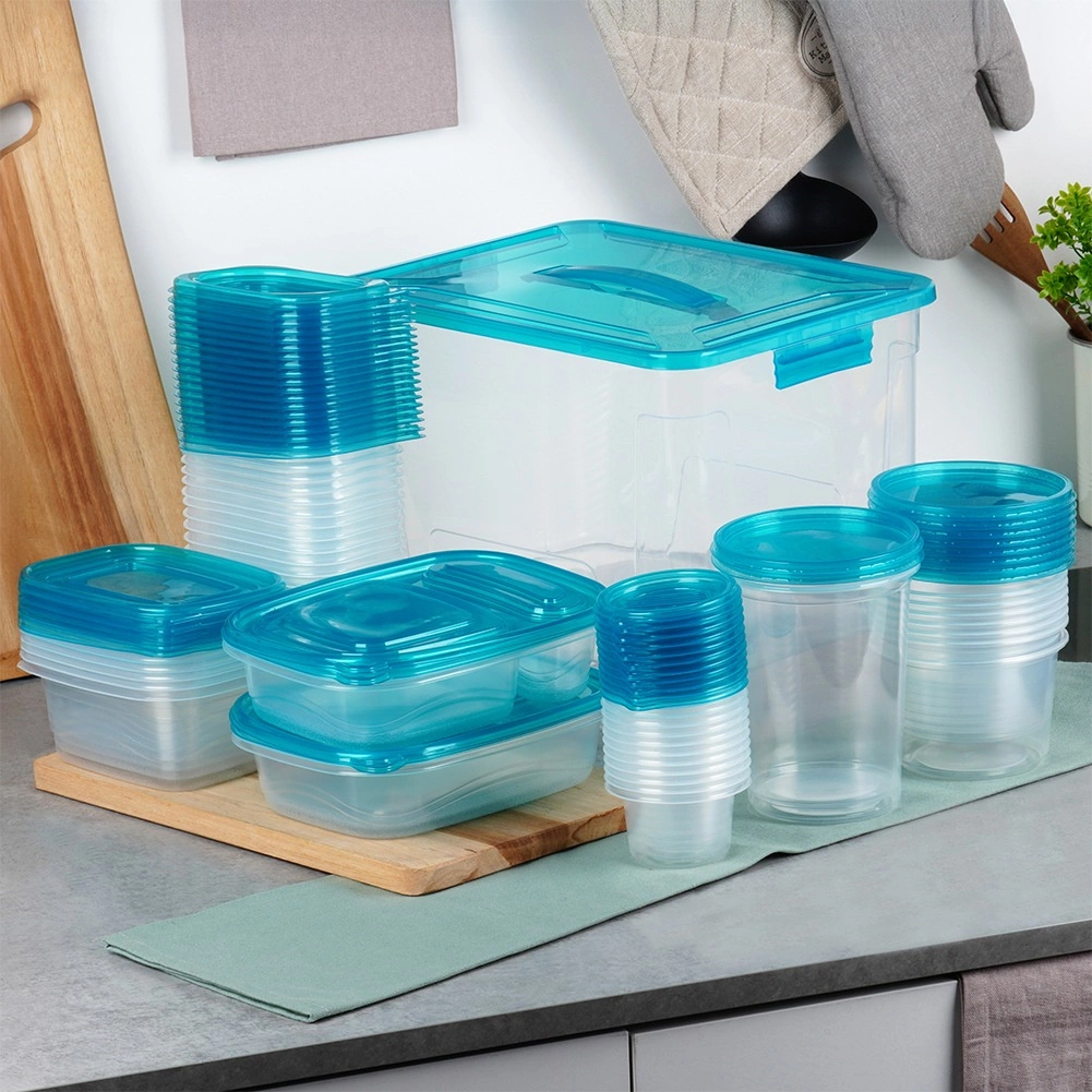 Táto všestranná sada 50 ks zahŕňa mix okrúhlych a obdĺžnikových dóz na prehľadné skladovanie surovín, hotových jedál aj desiat. Priehľadné steny poskytujú jasný prehľad o obsahu, zatiaľ čo pevné viečka zabezpečujú spoľahlivé utesnenie proti úniku vôní a vysychaniu.