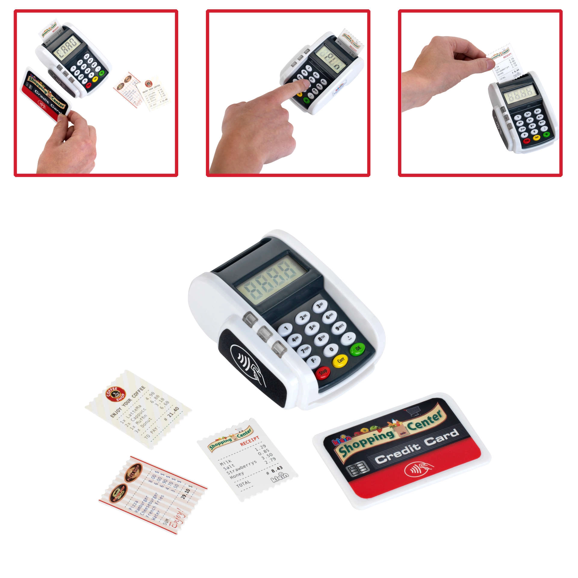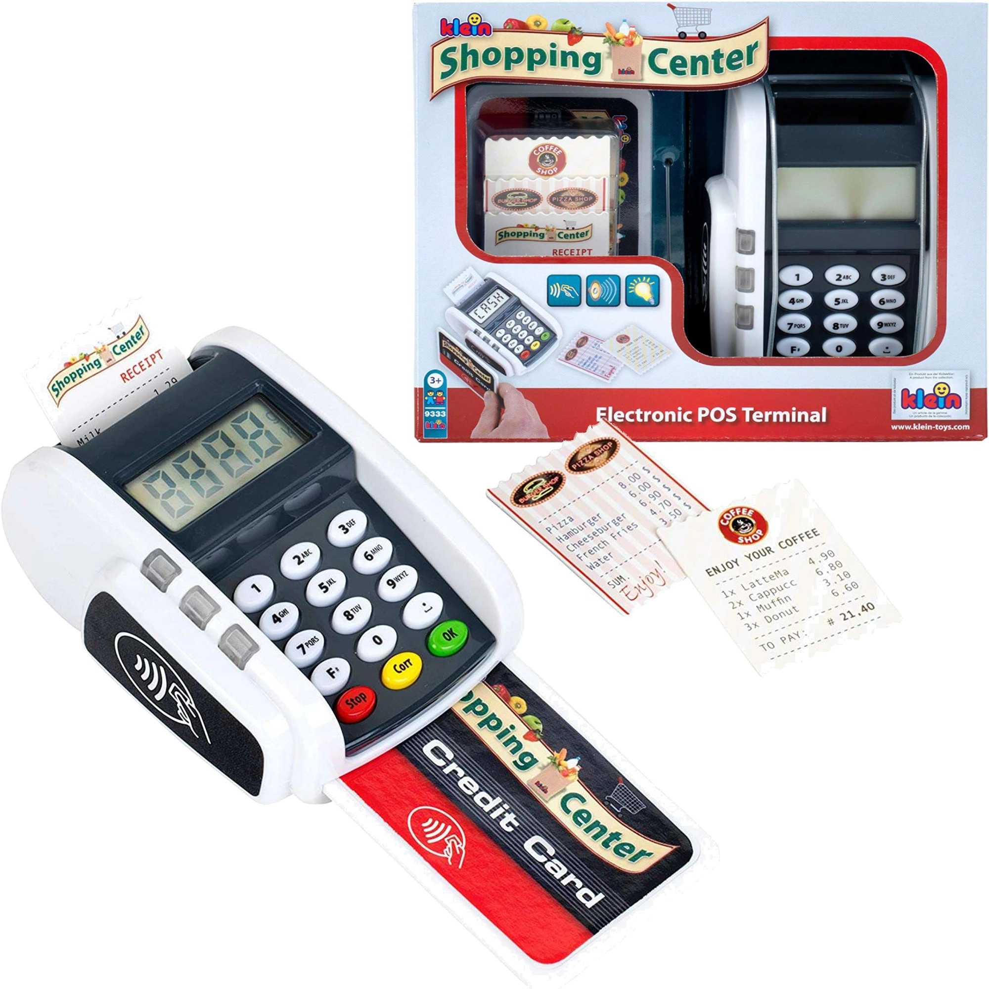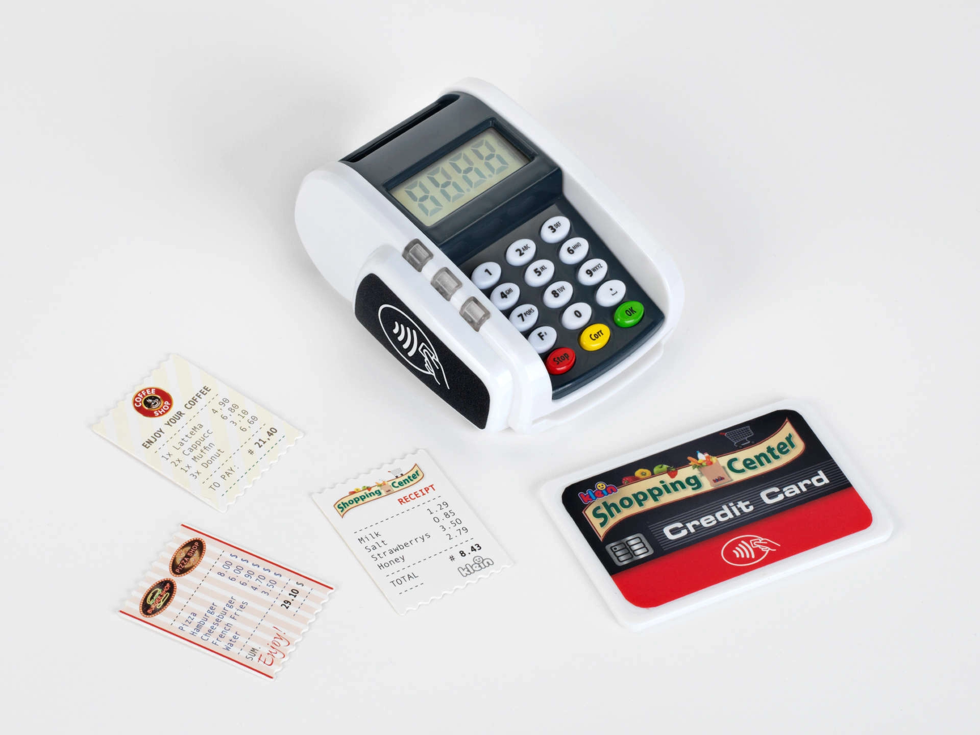 Realistický detský platobný terminál od značky KLEIN prináša zábavu ako pri pokladni. Ponúka funkčné tlačidlá, čítačku bezkontaktných platieb, svetelné a zvukové efekty a umožní deťom hravou formou rozvíjať predstavivosť pri hre na obchod alebo reštauráciu.