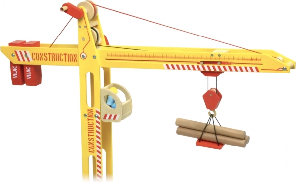 Veľký drevený žeriav VILAC nadchne malých staviteľov realistickým spracovaním – od kabíny cez protizávažie až po funkčný vozík. Vďaka širokej podstave je žeriav mimoriadne stabilný a bezpečný. Deti môžu celým žeriavom voľne otáčať, zdvíhať aj posúvať bremená pomocou dvoch plynulých kľučiek, čo podporuje motoriku, predstavivosť a hry na roly.