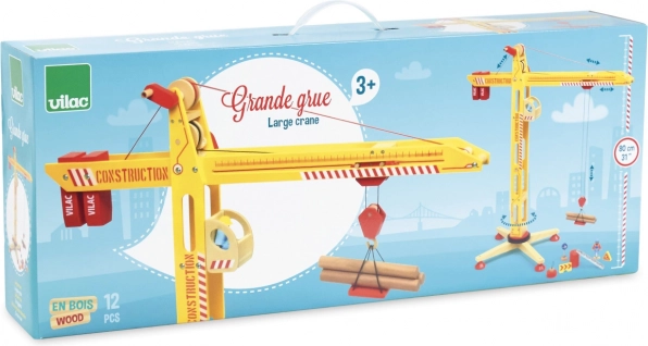 Objavte veľký drevený žeriav VILAC, ktorý premení každú detskú izbu na rušné stavenisko. Ponúka plnú rotáciu, zdvíhanie a posúvanie bremien pomocou dvoch kľučiek, stabilnú širokú základňu a bohaté príslušenstvo vrátane magnetu, figúrok a nákladov. Robustná kombinácia masívneho dreva a preglejky s nezávadnými farbami zaručuje dlhú životnosť a bezpečnú hru.