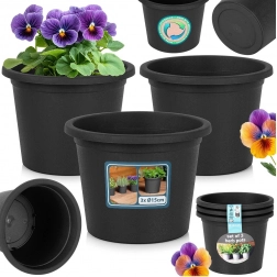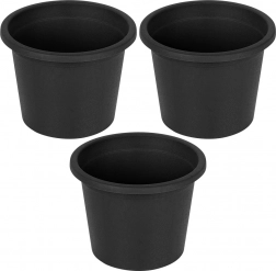 Sada 3 okrúhlych kvetináčov s výškou cca 11 cm (horný priemer 14,5 cm, spodný cca 10 cm) je ideálna na pestovanie alebo dekoratívne zakrytie pestovateľských nádob. Minimalistická čierna a čisté línie ľahko ladia s každým štýlom a nechajú vyniknúť farby rastlín.