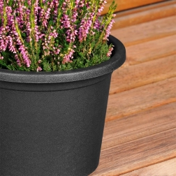 Čierny povrch zvýrazní farby rastlín a zabezpečí univerzálne využitie pri vchodových dverách, na terase, balkóne aj v záhrade. Materiál je z 90 % z recyklátu a kvetináč je plne recyklovateľný, čo z neho robí ekologickú voľbu. Jednoduchá údržba – nečistoty jednoducho opláchnete vodou.