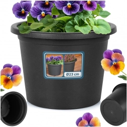 Čierny okrúhly kvetináč s priemerom 23 cm a výškou 16,5 cm je skvelou voľbou na pestovanie rastlín aj ako dekoratívny obal. Vďaka odolnosti voči poveternostným vplyvom ho môžete bez obáv používať vonku po celý rok – nevadí mu dážď, vietor ani slnečné žiarenie.