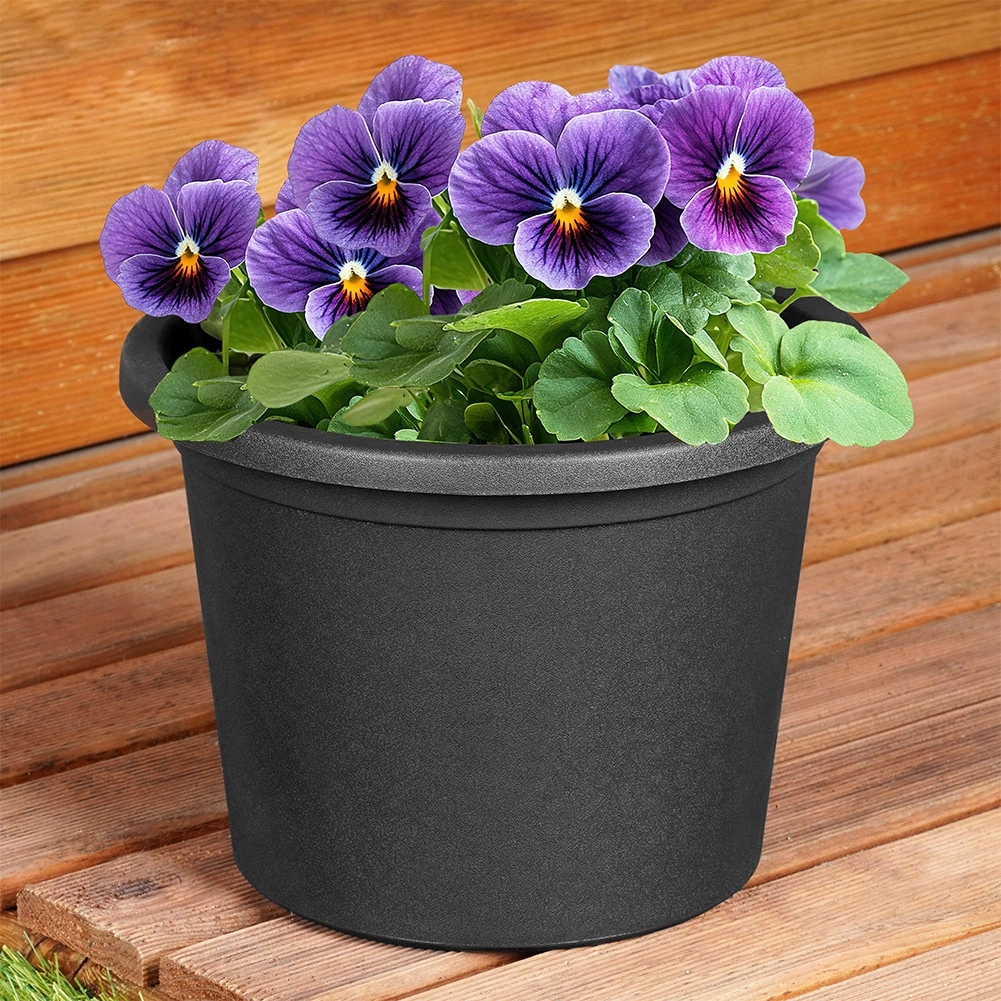 Klasický okrúhly tvar a čierna farba sa hodia na balkón, terasu aj k vchodovým dverám. Rastliny v ňom krásne vyniknú.
