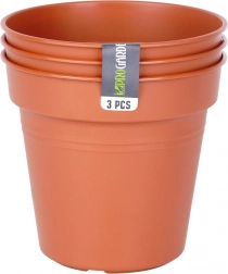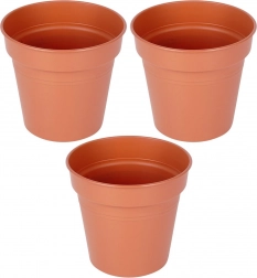 Praktická sada 3 plastových kvetináčov s horným priemerom 13 cm a výškou 12 cm je skvelou voľbou na pestovanie byliniek, balkónových aj izbových rastlín. Klasický okrúhly tvar a tehlový odtieň sa hodia do každého interiéru aj na balkón, terasu či záhradu. Ľahký, odolný materiál uľahčuje manipuláciu a čistenie.