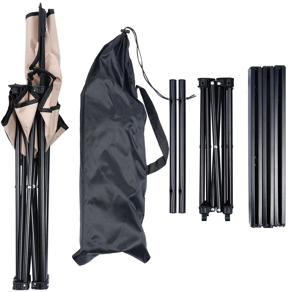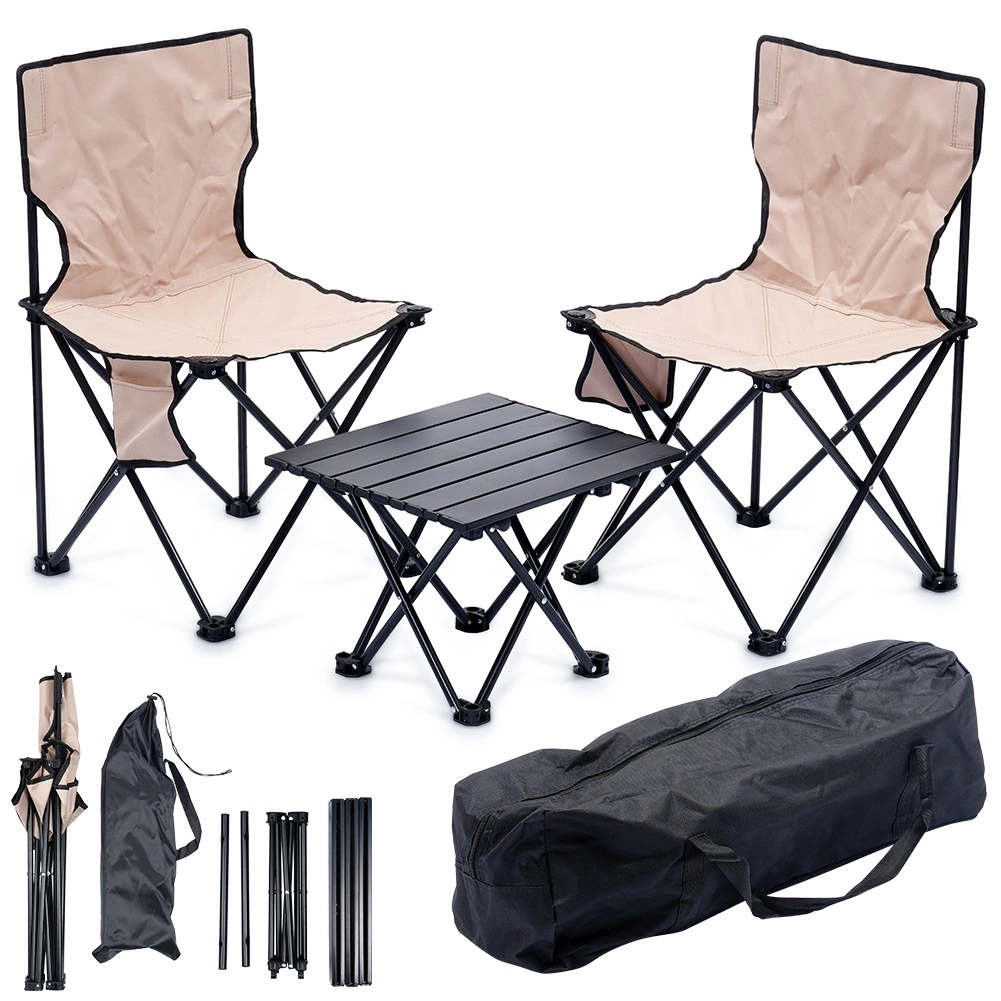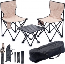 Dôraz na stabilitu a trvácnosť zaisťuje oceľový rám v čiernej farbe a pevná polyesterová látka v elegantnom béžovom odtieni. Vďaka kompaktným rozmerom je set perfektný na kemp, piknik, rybárske výpravy aj relax na záhrade.