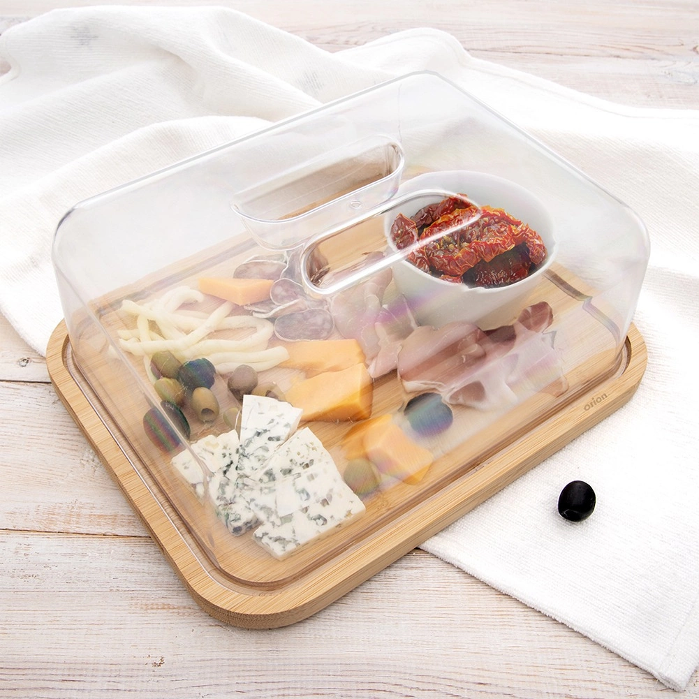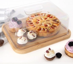 Táto obdĺžniková bambusová doska s čírym poklopom je navrhnutá na každodenné servírovanie aj skladovanie potravín. Rozmery s poklopom 28 × 22 × 11 cm poskytujú dostatok priestoru na syry, chlebíčky, zákusky či ovocie. Transparentné veko s integrovaným madlom umožňuje rýchly prístup a zároveň udržiava čerstvosť podávaných dobrôt.