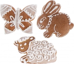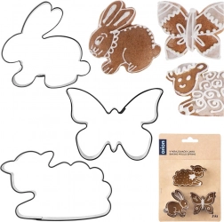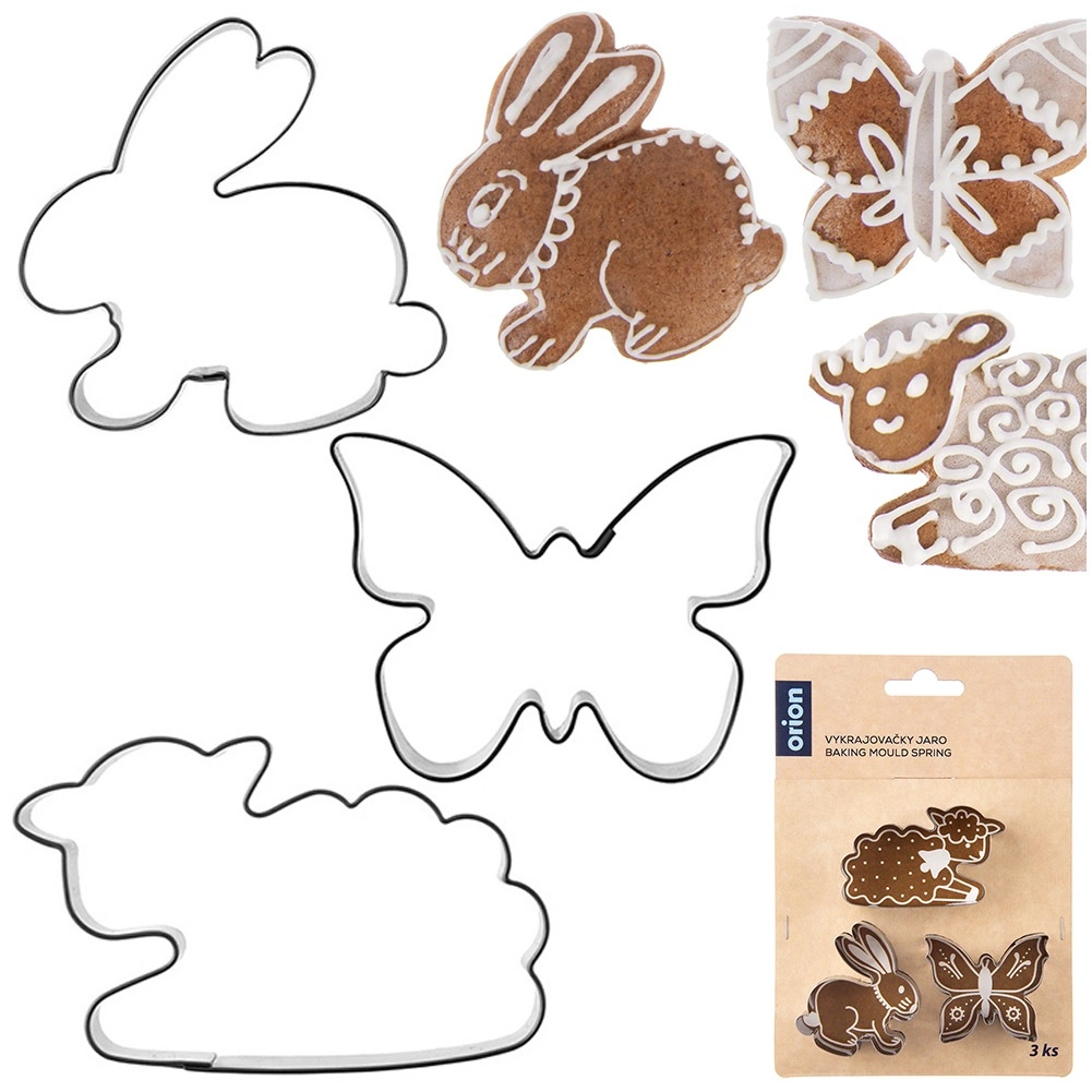 Rozmery: ovečka 7 × 4 cm, zajačik 5 × 5,2 cm, motýľ 5 × 4,3 cm. Jednoduchá údržba vďaka možnosti umývania v umývačke. Kvalitné spracovanie podľa európskych štandardov zaručuje dlhú životnosť a spoľahlivý výsledok pri každom pečení.