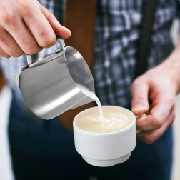Tvarovaný zobáčik a pevné ucho zaručia plynulý tok tekutiny a čistý okraj šálky – ideálne na servírovanie mlieka aj jemných omáčok.
