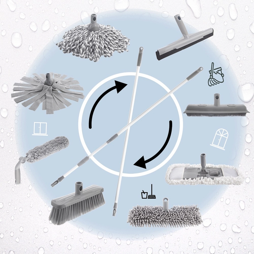 Univerzálny závit a jednoduché click uchytenie zabezpečia kompatibilitu s mopmi, metlami a kefami, a tým rýchlu výmenu príslušenstva.
