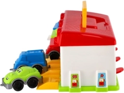 Táto farebná plastová garáž je ideálna pre každého malého nadšenca do áut. Ponúka úložný priestor pre tri autá, ktoré sú súčasťou sady: hasičské auto, osobné auto a dodávka. Každé auto má svoj vlastný vchod do garáže, čo zaisťuje ľahký vjazd a výjazd. Garáž podporuje imaginatívnu hru a rozvíja motorické schopnosti detí.
