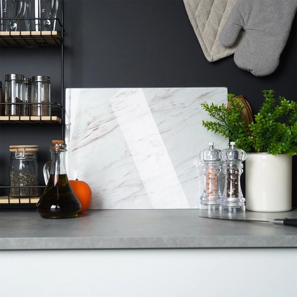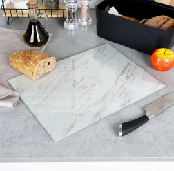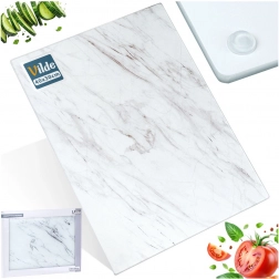 Elegantná sklenená doska s efektom bieleho mramoru s rozmermi 40 × 30 cm je ideálna do každej kuchyne. Ponúka hygienický povrch, odolné tvrdené sklo, jednoduché čistenie a protišmykové podložky pre bezpečné krájanie. Vhodná aj ako ochrana pracovnej dosky alebo na štýlové servírovanie.