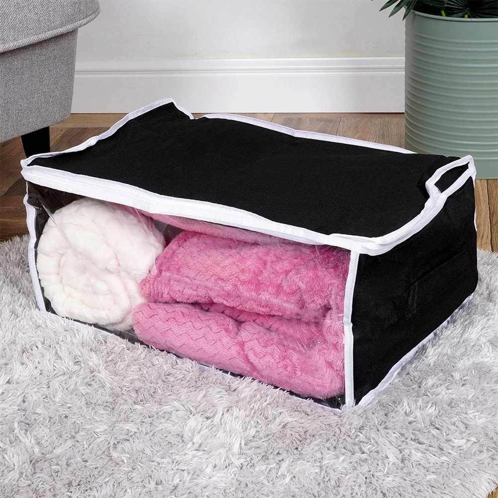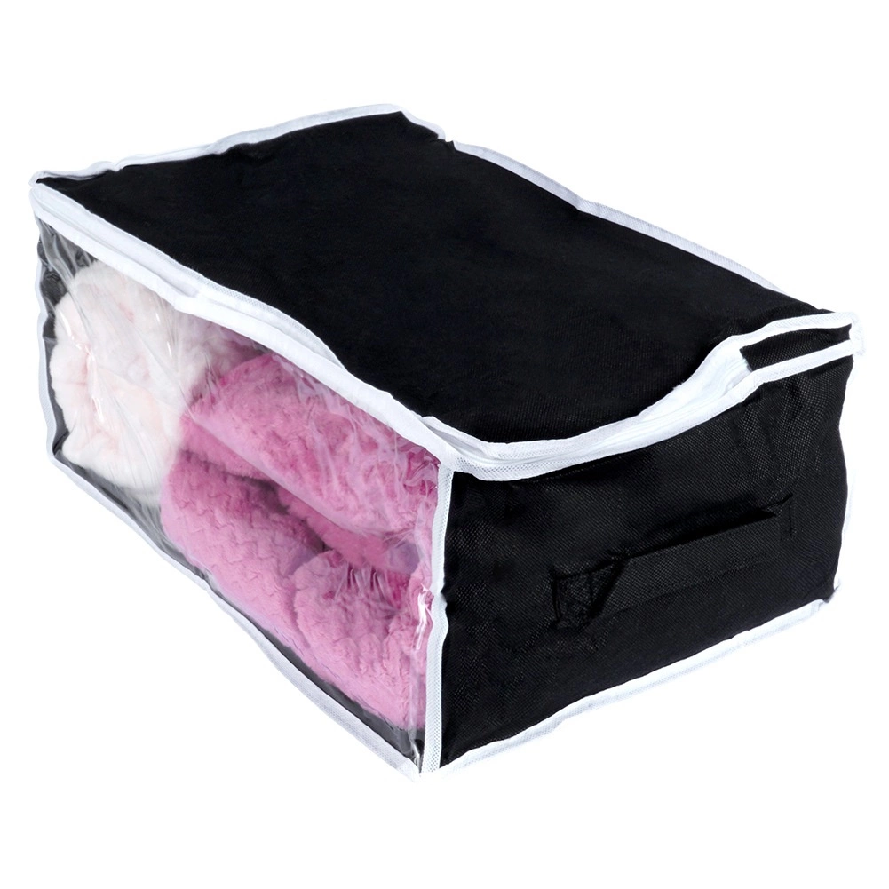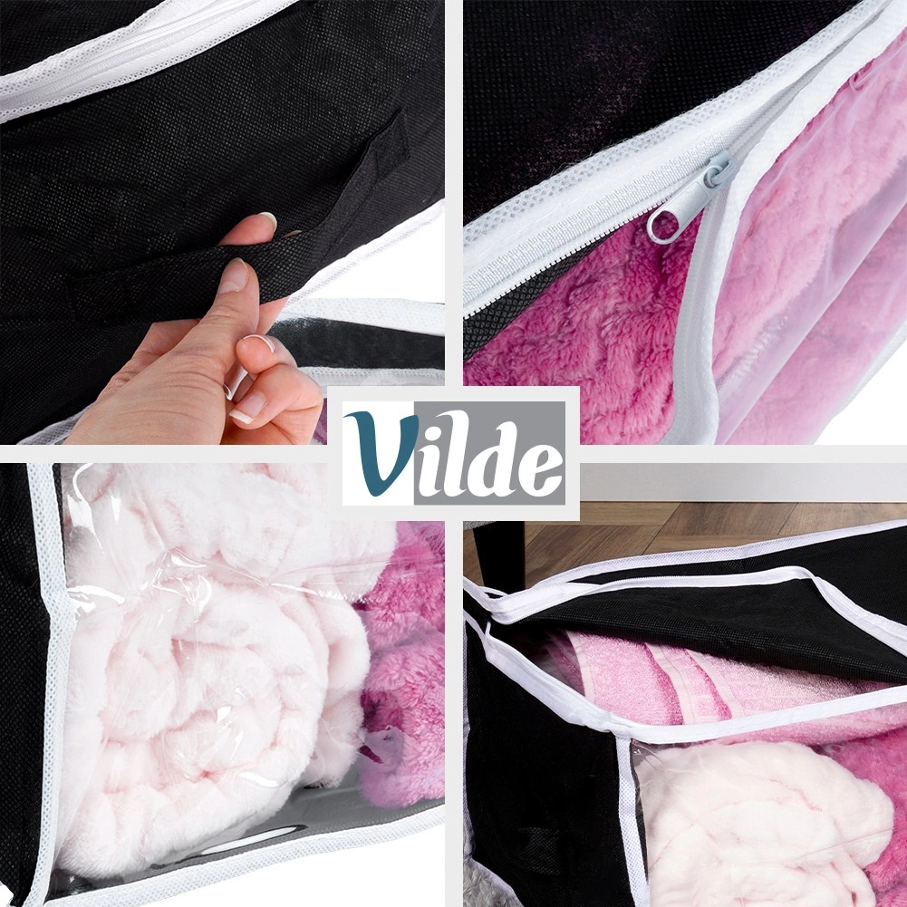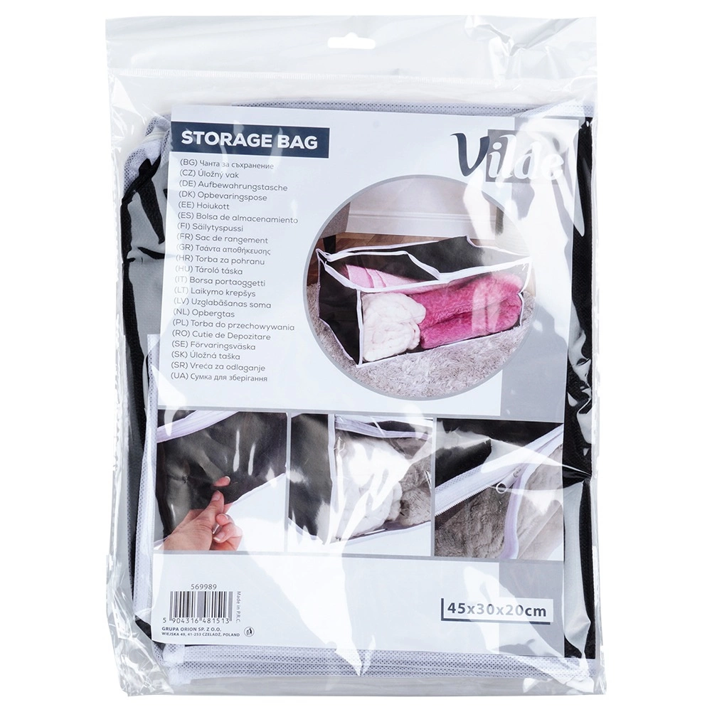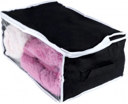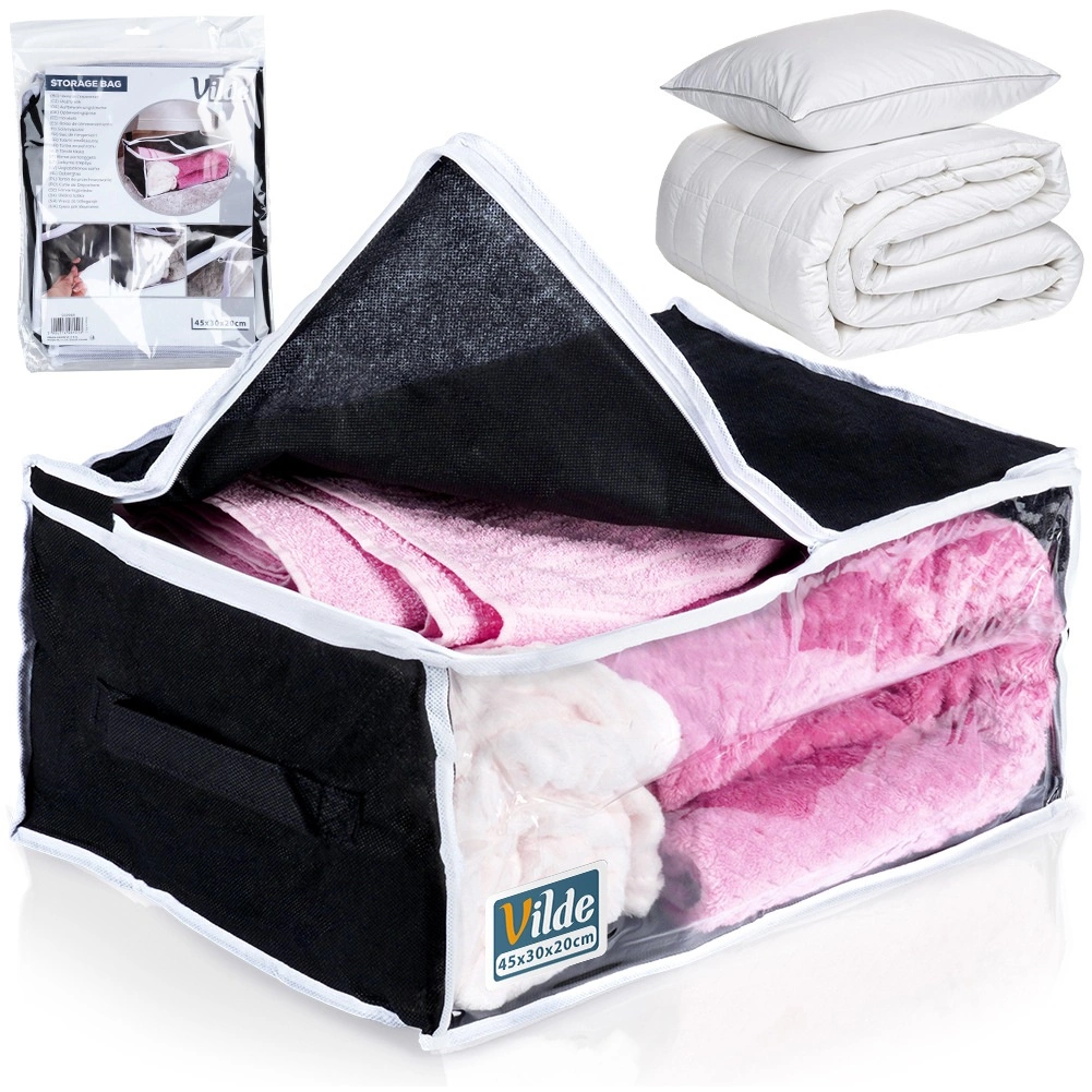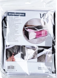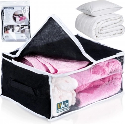 Praktický úložný vak na posteľnú bielizeň, deky, vankúše aj oblečenie chráni vaše textílie pred vlhkosťou, prašnosťou a moľami. Vďaka priehľadnému okienku, dvojitému zipsu a pohodlnému uchu máte všetko prehľadne usporiadané a ľahko prenosné – ideálne do skrine aj pod posteľ.